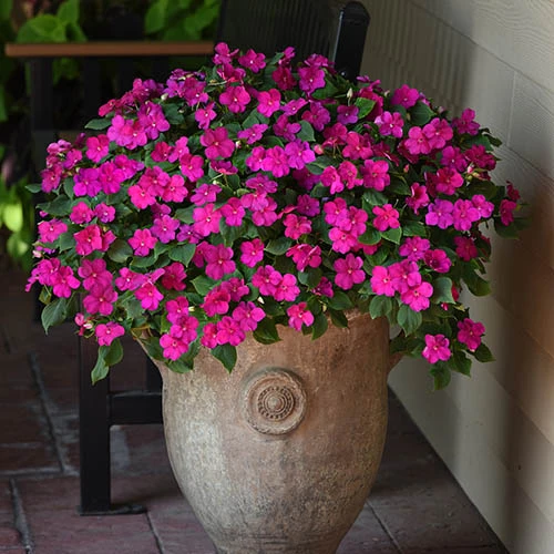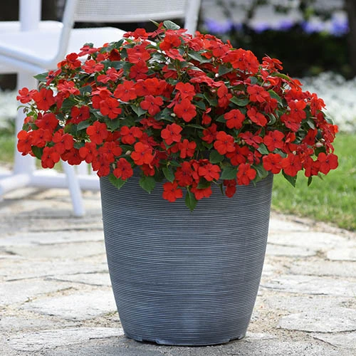 One of the most popular bedding plants, theย ‘Beacon’ย series of Busy Lizzie (impatiens walleriana) is guaranteed to excel in UK gardens, rain or shine, sun or shade! During intensive, large-scale trialling,ย ‘Beacon’ย out-performed other varieties even when exposed to downy mildew, growing superbly and lasting until the first frosts.