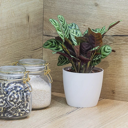 Related to Calathea, Ctenanthe shares its fascinating and unusual habit with leaves that close upwards when light levels fall as if in prayer.